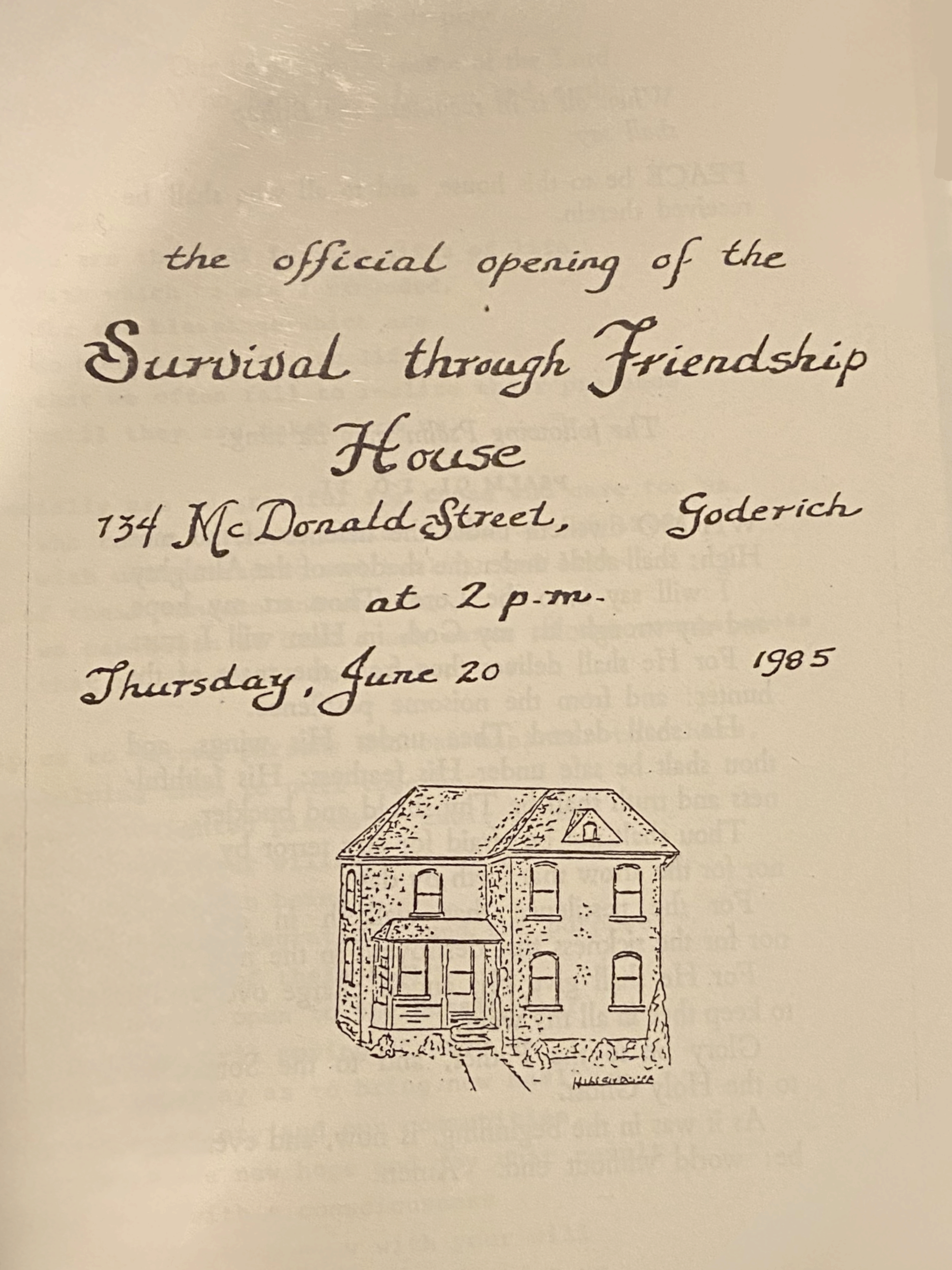 The shelter officially opened on June 20, 1985 as Survival Through Friendship House—a milestone that transformed the landscape of safety and support for women in Huron County. But June didn’t stop there. She continued to raise funds, give talks, collect supplies, and advocate for more comprehensive support. Through fundraising and government support, the shelter was able to move to a new, purpose-built facility on Huron Road in 1993, where it continues to support women to this day.
